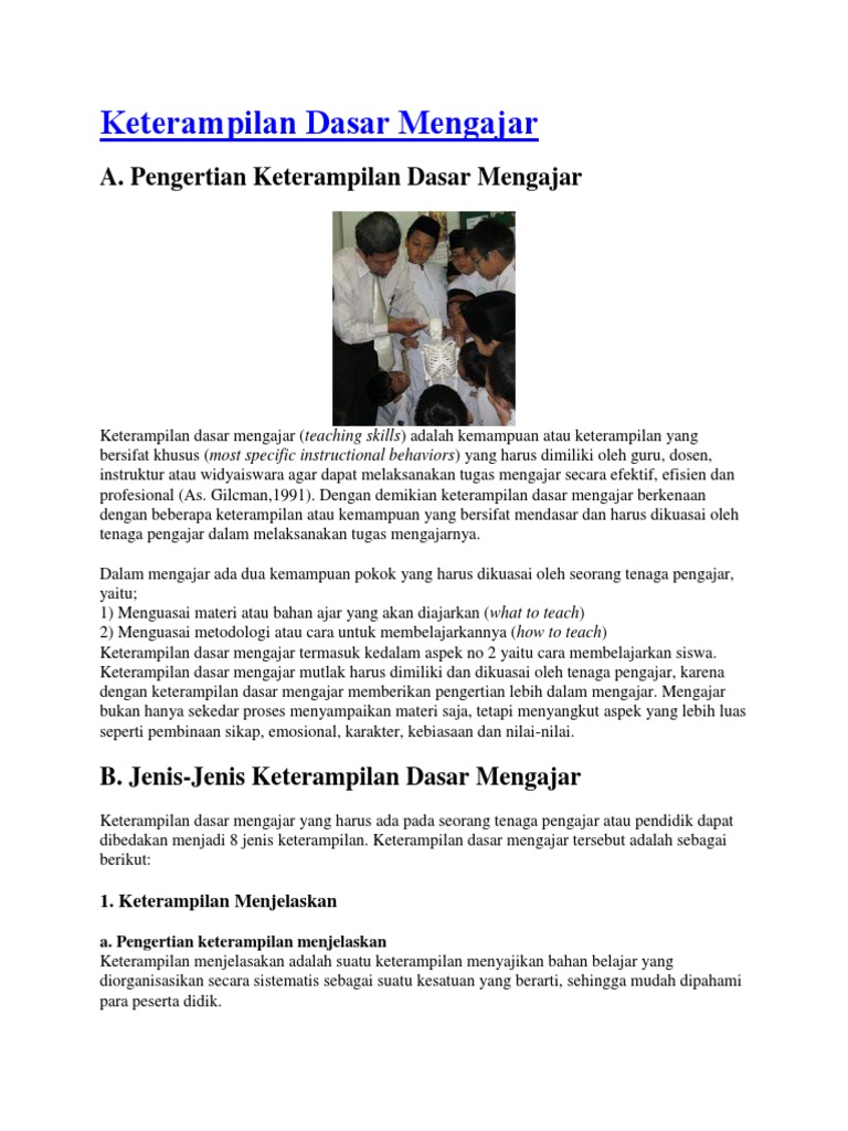 mengajar keterampilan disajikan bersifat berarti dipahami